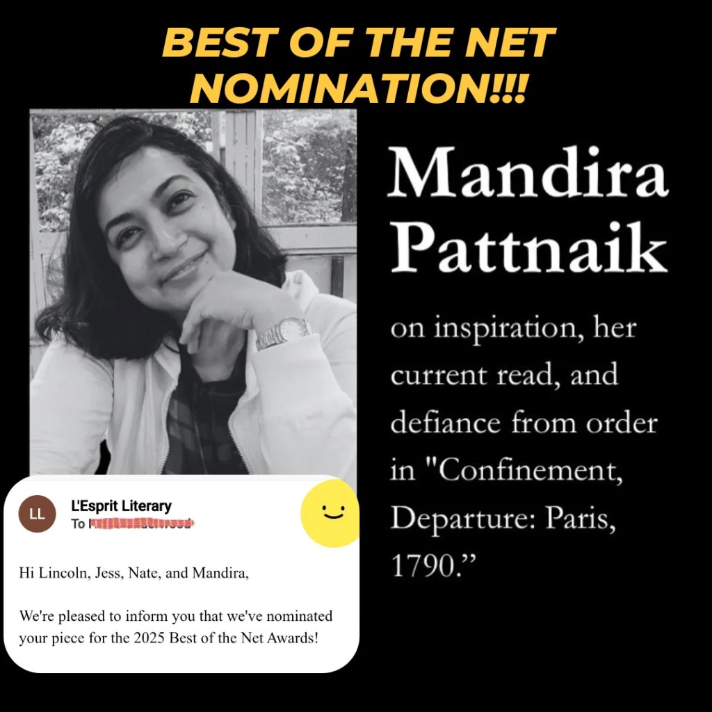 L’ Esprit Literary nominated “Confinement, Departure: Paris, 1790” for Best of the Net in October 2025